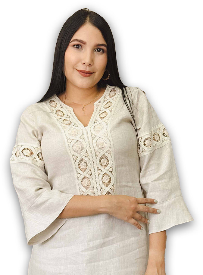 Blusa elaborada en lino 100% y ojalillo con técnica pata de cabra