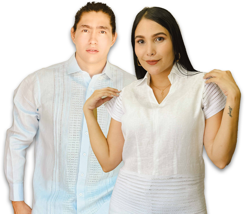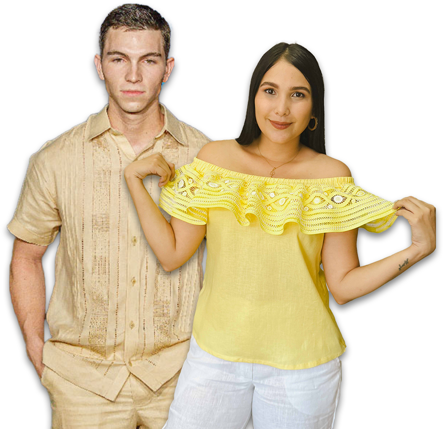 Camisa guayabera, pantalón y vestido caladas