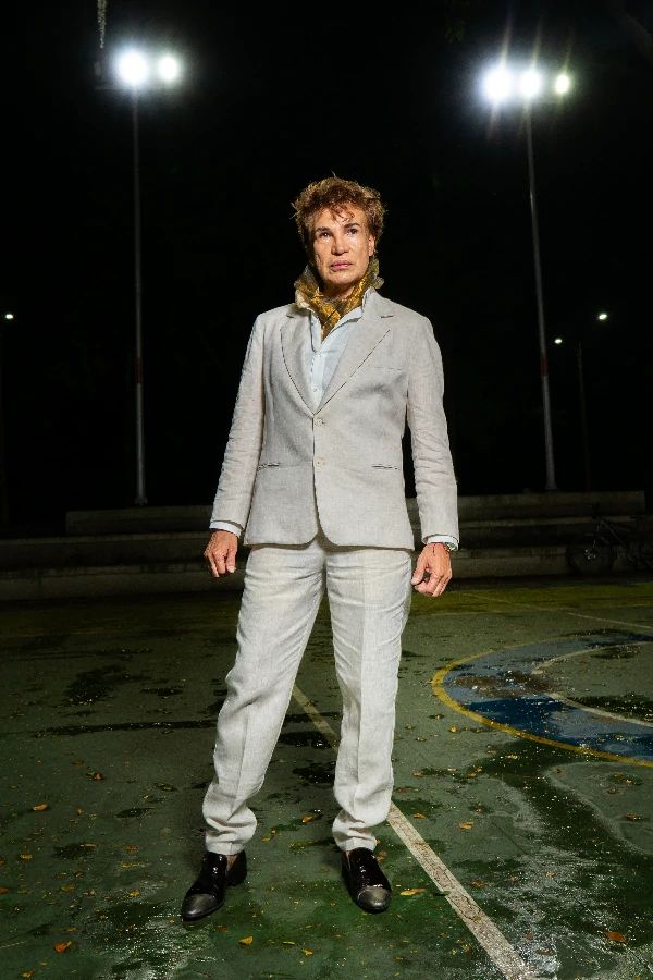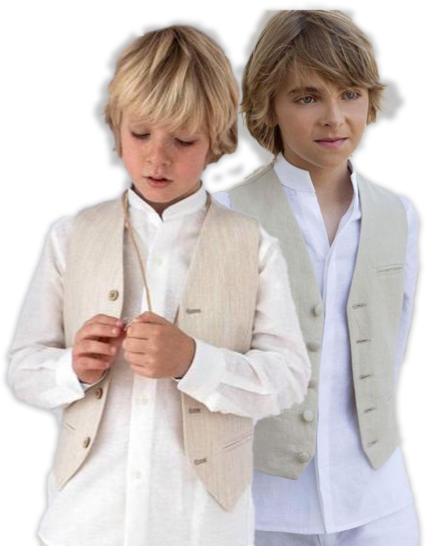 Chaleco y falda en lino con bordados